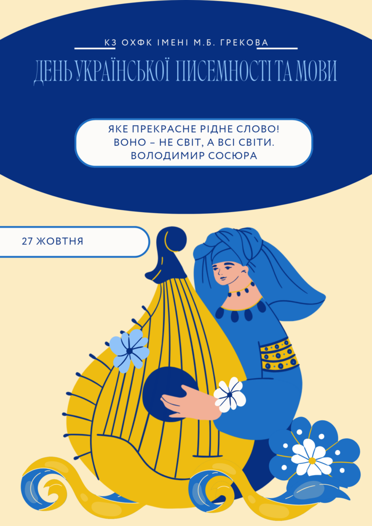 27 жовтня здобувачі освіти освітньо-професійної програми «Художнє оформлення» та “Художнє декорування середовища” долучилися до відзначення Дня української писемності та мови.У межах святкування бібліотекою була організована книжково-ілюстративна виставка «Говори. Пиши. Читай українською», де представлені літературні новинки українських авторів, ілюстративні матеріали та цікаві факти з історії української мови.Студенти 3 курсу провели тематичні читання поезії українських поетів «Слово, що об’єднує серця», які організувала викладачка української мови та літератури Анна Погорела. Під час читань лунали натхненні вірші про силу й красу рідного слова. Вікторія Липова (ХО-21) декламувала вірш Дмитра Павличка «Рідна мова», а Кравцова Ксенія (ХДС-11) — вірш Оксани Забужко «Рідна мова».Також здобувачі освіти взяли участь у Всеукраїнському радіодиктанті національної єдності, демонструючи єдність і повагу до українського слова.Особливою окрасою заходу стала відеопрезентація «Слово — то мудрості промінь…» (за творчістю Лесі Українки), підготовлена Івановою Марією, студенткою групи (ХО-32). Робота вразила глядачів глибиною змісту та щирістю виконання.«Рідна мова — це музика й малювання душі людської.»— В. Липова«Мова – це великий скарб, який треба шанувати і збагачувати.»— Кравцова Ксенія, здобувачка освіти групи ХДС-11.Велика подяка Анні Погорелій за організацію тематичних читань та всіх заходів до Дня української писемності та мови, натхнення і створення теплої, дружньої атмосфери для здобувачів освіти.